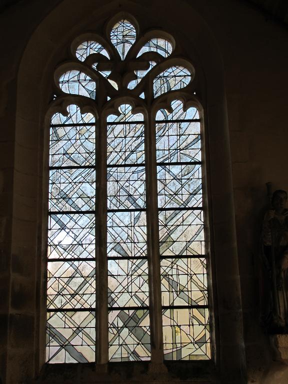 Tout aussi remarquable, le récent vitrail inséré dans la maitresse vitre en 1994, signé de Mickaël Messonnet