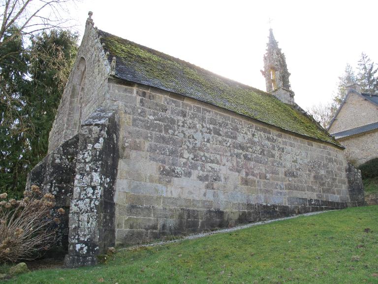 Implantée au bord du canal de Nantes à Brest, la chapelle de plan rectangulaire est construite en pierre de taille de granite. La déclivité du terrain entraine une grande différence de hauteur entre l'élévation ouest et le chevet, renforcé deux contreforts d'angle et par deux contreforts de chaque côté de la baie axiale. Ouverte d'une porte au sud et à l'ouest, la chapelle est principalement éclairée par la grande baie axiale du chevet à remplage à fleur de lys. Les rampants découverts de la toiture sont décorés de feuilles de choux frisés et les pierres d'assise sculptées d'animaux fabuleux ou réels, lion chien.