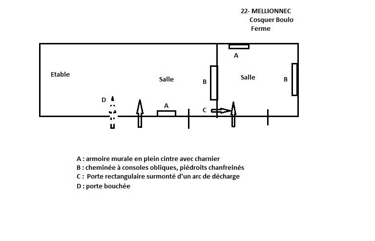Le logis à fonctions multiples (logis et étable dans un espace commun desservi par une ou deux portes sont surtout fréquents au 17e siècle (17 sur 20) (11 logis étable à porte unique, 6 à deux portes), cependant on remarquera la persistance de cette structure à deux portes jusqu’en 1838 (à Rénernic), ce qui parait tardif à cette date, même si la séparation des fonctions est alors assurée par une cloison