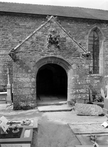 Eglise reconstruite en 1849 par Alphonse Guépin ; avec remploi du porche sud et de la porte ouest (1ère moitié 16e siècle) ; remplois des pierres de la chapelle Kerguillo ; calvaire daté 1548, construit pour Henri Quéré (inscription) ; et restauré en 1866 par Yves Hernot (inscription) et en 1868 (source) ; ossuaire 1ère moitié 16e siècle.