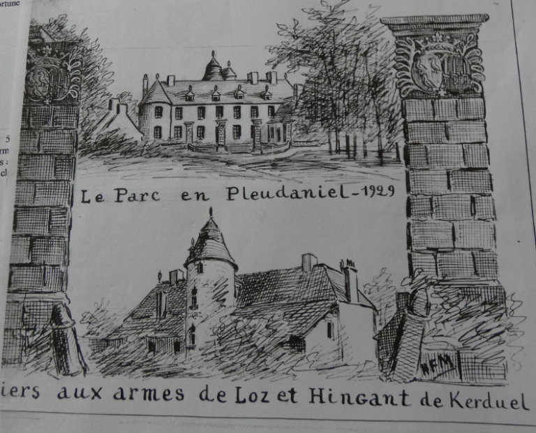 L’union, en 1783, de Joseph Marie Loz et de Marie Louise Adelaïde Hingant a elle aussi laissé des traces. En effet, le manoir de Kergrist réemploie l’un des piliers armoriés des armes en alliance des Hingant et du Loz appartenant au manoir du Parc et que Frotier de la Messelière a croqué en 1929 lorsqu’il se situait encore à son emplacement originel.