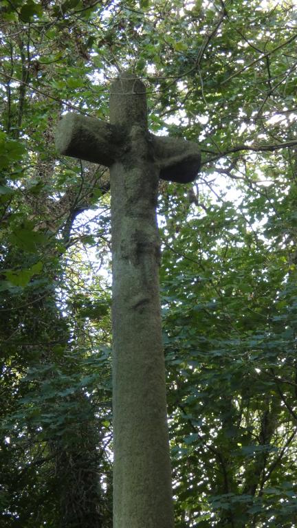 La croix de Saint-Antoine est située à une soixantaine de mètres au nord de la chapelle du même nom. Cet édicule est présent sur le cadastre de 1829 ; il daterait de la fin du 18e siècle selon la date portée 1786 sur son socle. Cette croix d’environ 3 mètres 50 est édifiée en granite. Elle possède un socle octogonal maçonné en pierres de taille et portant une griffe monolithe à chaque angle. Son fût et son croisillon sont de section circulaire. Un christ en croix prend place sur la face ouest de ce dernier.