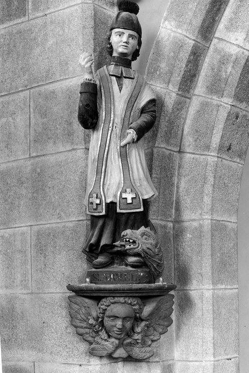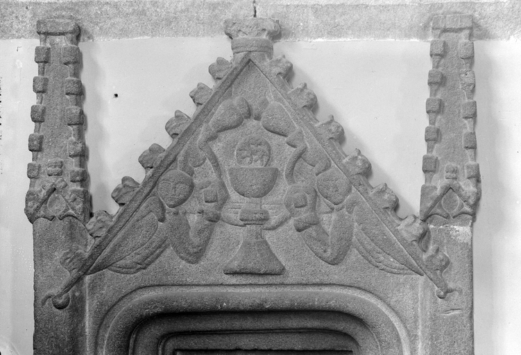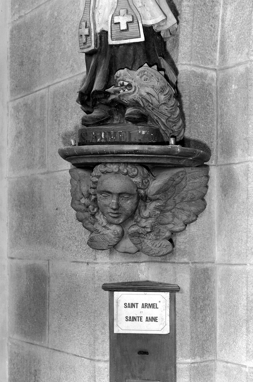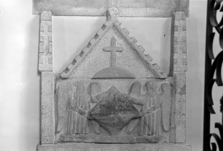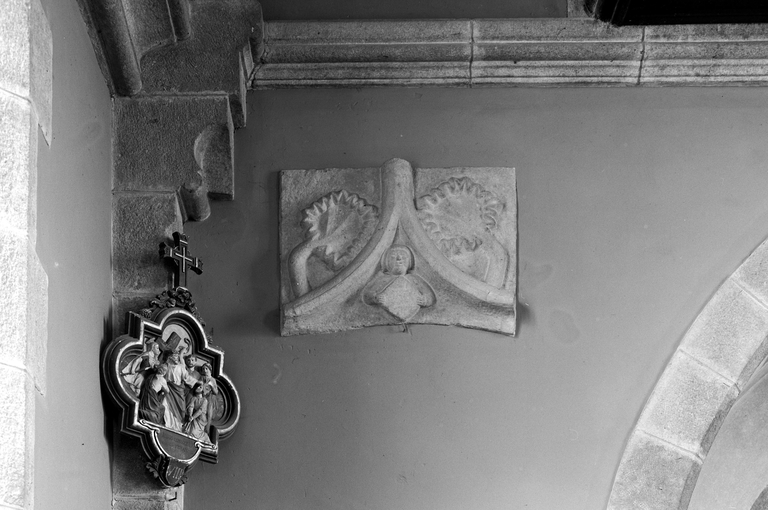 Eglise construite en 1894 par Angier ; remploi de pierres de l'édifice précédent, l'une portant l'inscription : HONOUR A MOUSSAYE (devise des de la Moussaye) ; blason remployé (de la Moussaye).