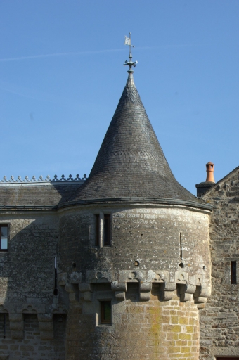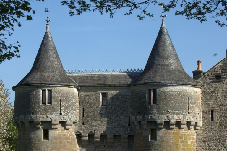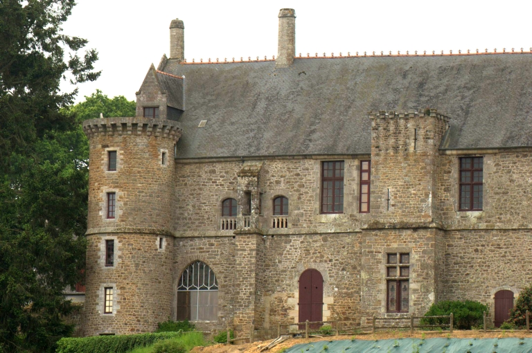 La tour d´escalier à pans coupés du logis surmonté d´un volume carré ponctué par un pignon, forme rare et atypique en Bretagne au 15e siècle est en revanche fréquente dans le Bessin et la campagne de Caen. Les attaches normandes de Jeanne de Meulan, dame de Beaumont, au 15e siècle peuvent expliquer ce parti architectural remarquable. La présence d´une chapelle en lieu en place de l´habituelle pièce haute qui surmonte les tours d´escaliers des manoirs est également tout à fait exceptionnelle et n´a pas reçu à ce jour d´explication.