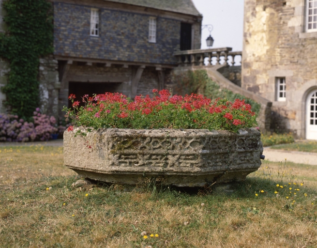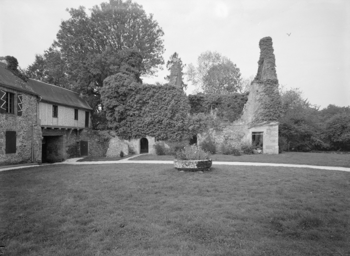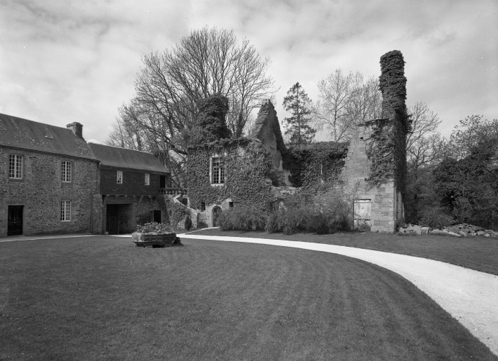 Logis 15e ou 16e siècle détruit ; colombier 16e siècle portant les armes de Charles de Ploeuc et de Marie de Saint-Gouesnou ; vasque fin 16e pour Vincent de Ploeuc portant les armes de Kergolay et Ploeuc et les armes de Kergolay, Rosmadec et Ploeuc ; incendié en 1675 et en 1873 ; actuel logis début 19e siècle.