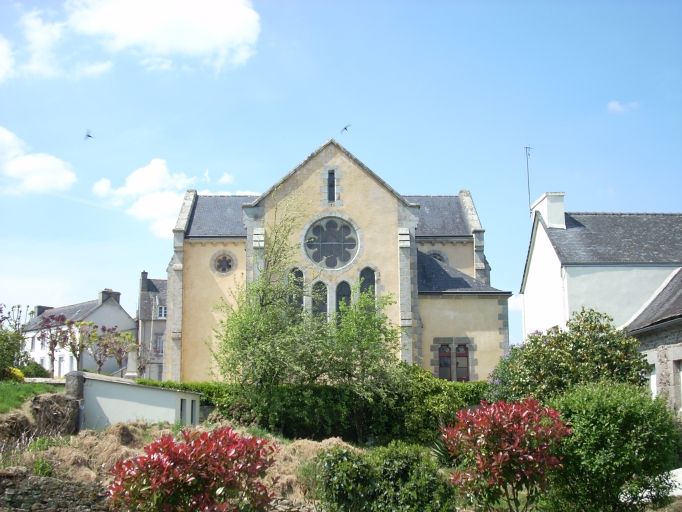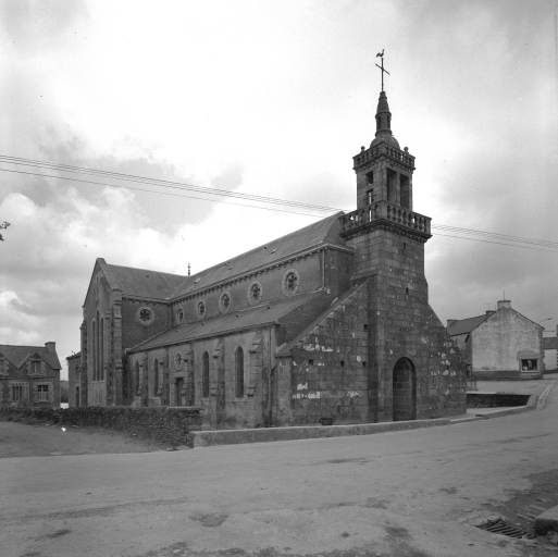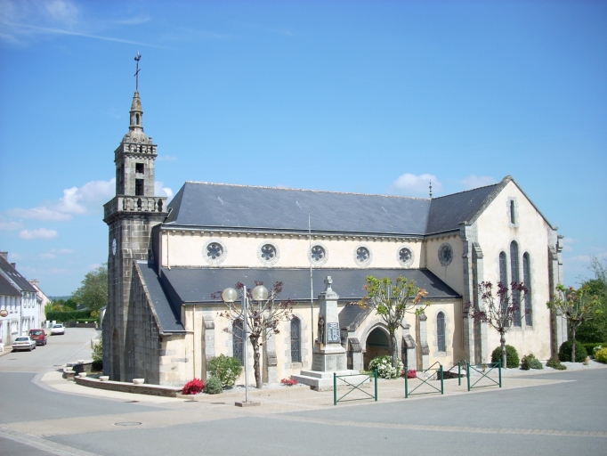 Clocher daté de 1828 selon l'inscription côté sud. Edifice agrandi d'après les plans de l'architecte diocésain Joseph Bigot en 1856 par les entrepreneurs Kerguénère et Féjean. Eglise construite en 1894 par les plans de l'architecte Armand Gassis ; sauf la façade occidentale 18e siècle de l'édifice antérieur.