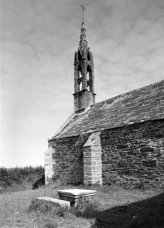 Chapelle construite en 1573. Inscription : " V Y TRETOUT FA EN LAN 1573 ". Façade occidentale remaniée en 1629. Inscription : " LOUYS BUZEN 1629 ". Clocher remanié en 1773. Bras nord du transept détruit. Fontaine 17e portant un blason aux armes de Lanvilliau remployé dans le maître autel. Croix déplacée en 1896 à Keravel Ar Goulid en Plomodiern.