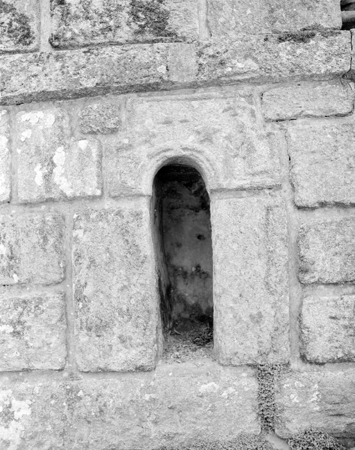Edifice début 19e siècle, remploi de vestiges de provenance (non confirmée) du château fort détruit de Ty Varlen à Landudec.
