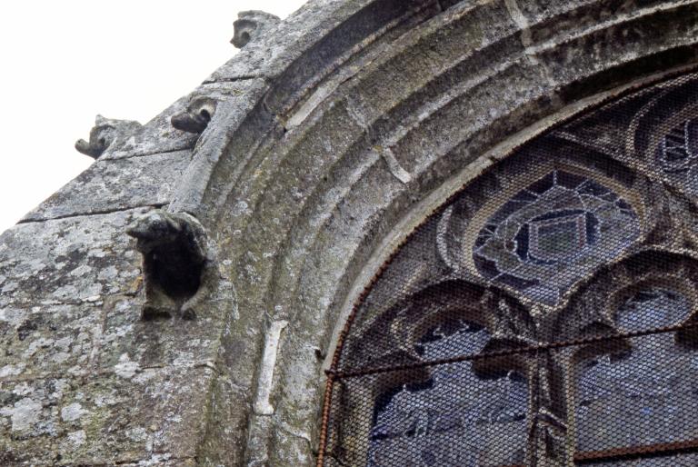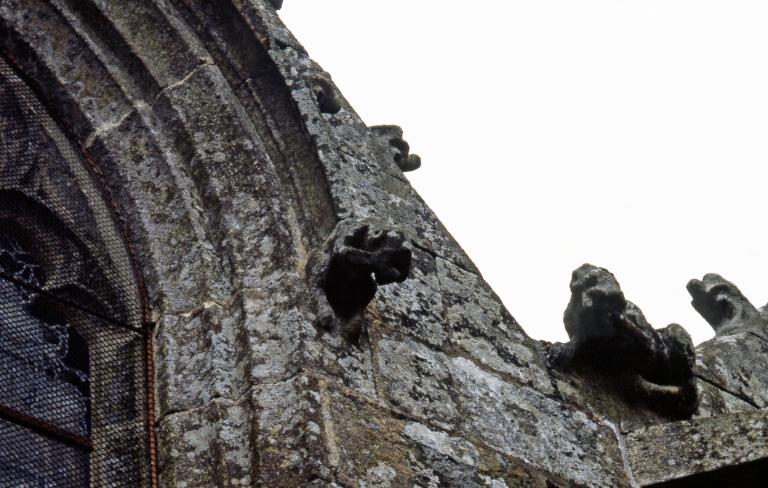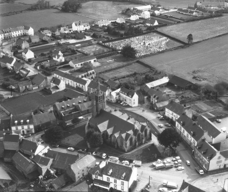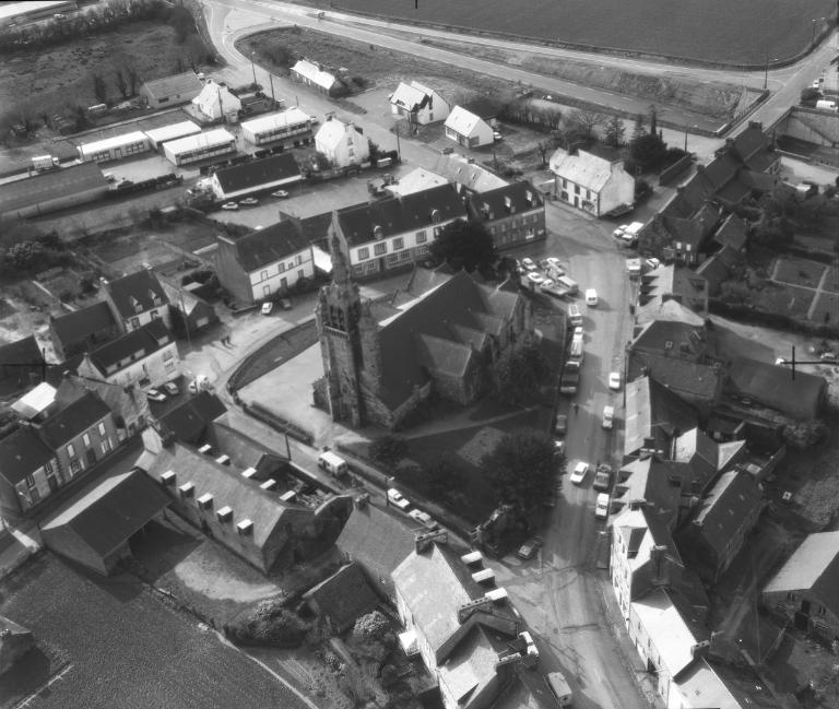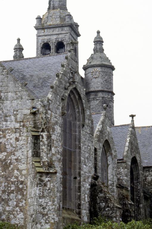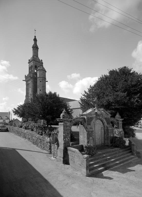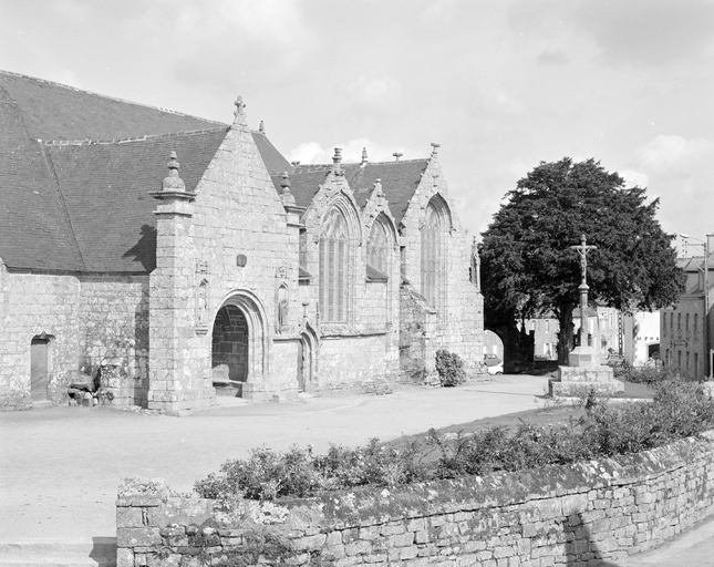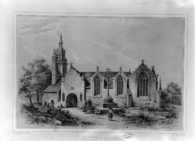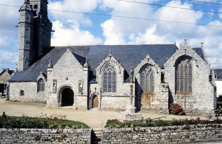 Partie ouest de la nef construite au 15e siècle ; ensemble des vaisseaux construits au 16e siècle ; porche 1581 ; tour construite de 1656 à 1661 date portée ; la tour porte dix inscriptions ; en 1721 transformation des quatre grands piliers du côté du choeur ; 1864 date portée construction de la sacristie ; treize inscriptions : croix 19e siècle : Croaz mission Plogonnec JH Mie Dupont R ; croix du haut moyen âge ; stèle christianisée ; le portail de l' enclos est du début du 18e siècle.