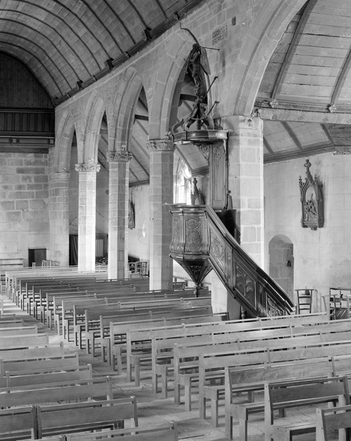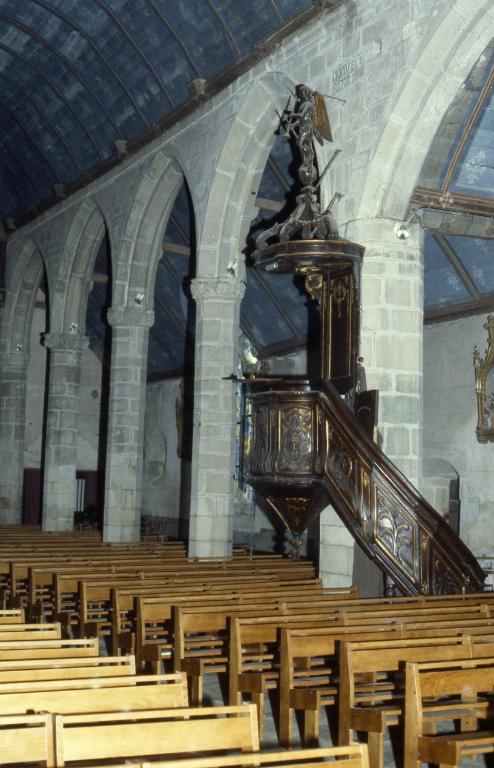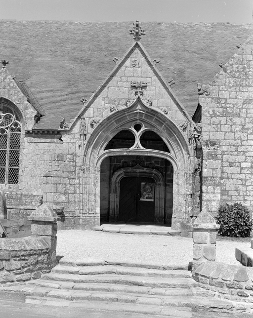 Antiquité stèle ; tour commencée en 1591 ; ailes de 1702 ; sacristie de 1729, date portée ; chevet 1740 ; nombreuses inscriptions dont sur la porte ouest : HE LE BAIL FA LAN 1591, sur le clocher : MRE Y. LE BIHAN CURE M.A.I CORRE HERVE KERIVEL FABRICQUE 1717 ; dans la nef : I KERIVEL 1702 ; croix monumentale datée 1871 par Jean Larhantec, inscription en breton : O CROAS SANTEL O CROAS BENNIGET...