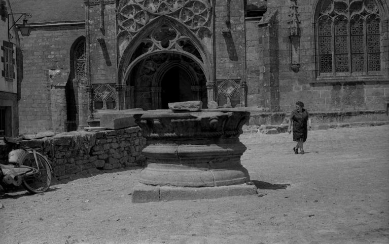 Si la date de l’enlèvement du monument n’apparaît pas dans les archives, on sait en revanche que le règlement de l’acquisition est exécuté le 12 avril 1969 et celui de la mise en place le 31 octobre suivant. C’est Pierre Jolivet qui réalise la pose du puits pour 2 019 F. et Monsieur Hénaff qui fournit une grille à sceller sur la margelle pour 304,15 F. L’ancien puits a dû être démoli autour du mois de septembre et remplacé alors par le nouveau. Bouché dans les années 1980, il est doté d’une arche, remplacée depuis lors par celle qu’on voit en 2024.