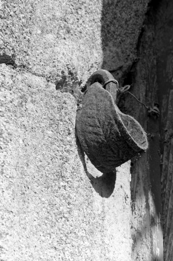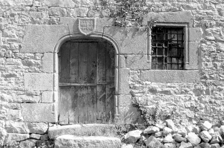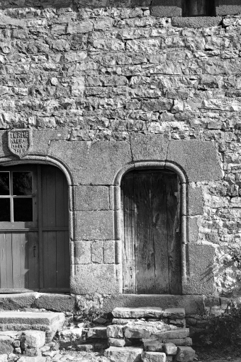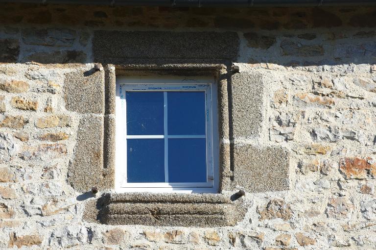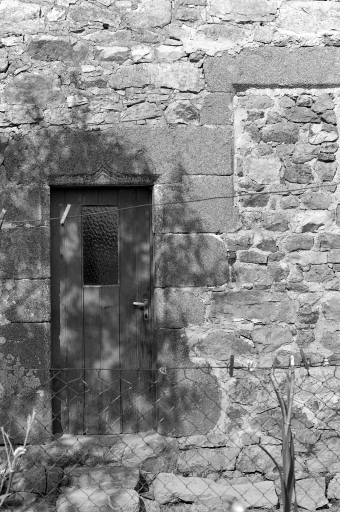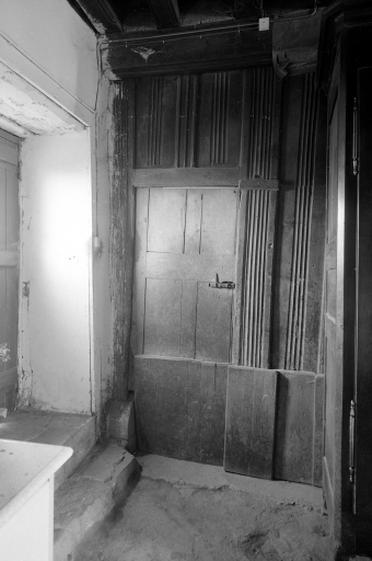aménagées plus tardivement entre ces deux portes. Le deuxième niveau possède deux fenêtres à appui saillant mouluré. Il reste encore les vestiges de la sortie d'évier qui devait autrefois prendre place à ce niveau du logis. Les deux petites fenêtres du centre sont des aménagements effectués dans la seconde moitié du 20e siècle.