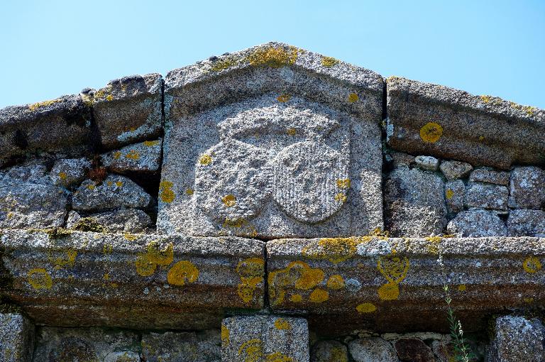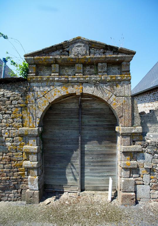 Une grande porte cochère en plein cintre située à l’est du manoir donnait autrefois accès à celui-ci. Un grand nombre de moulures ainsi qu’un fronton triangulaire comportant un blason sont présents sur cette porte constituée également de pierres de taille en granite.