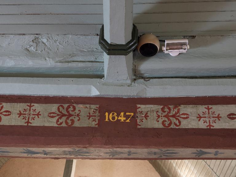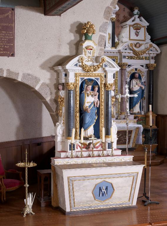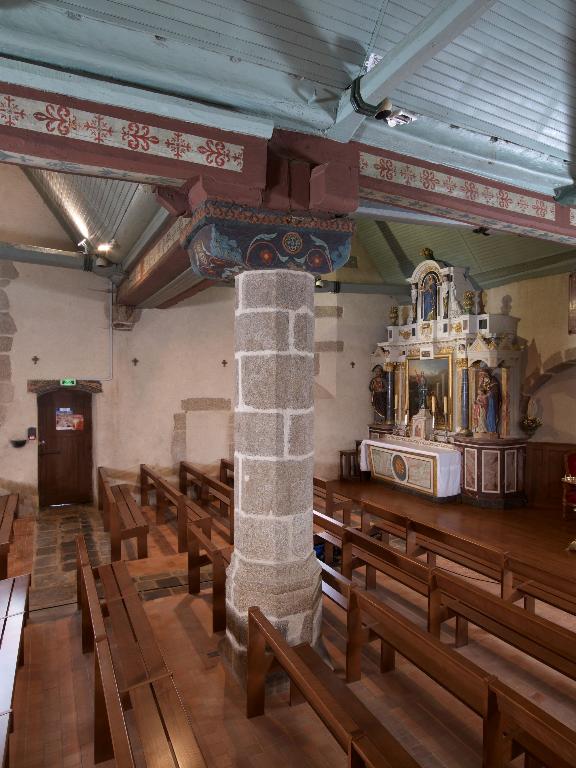 A l'intérieur, les deux chapelles nord sont séparées de la nef par un pilier octogonal qui soutient une grande poutre. Elles sont séparées entre elles par une autre poutre reposant sur le même pilier. On lit sur le douvis de la poutre l'inscription suivante: «Michel Deulin, Iac Pihan-trésoriers 1657 l'an, lambruissé par Philippe-Cousin Maistre Charpetier-en décembre-1658.