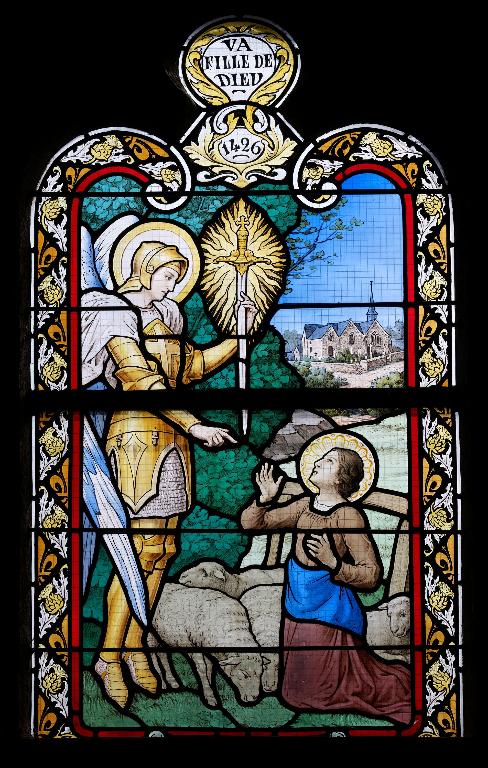 Vestiges probables d'un appareillage roman dans la nef. Baies sud et charpente de la nef reprises au début du 15e siècle. Chapelle nord de la 2e moitié du 16e siècle avec lambris refait au 3e quart du 17e siècle (inscriptions signalées par Paul Banéat : "Michel Deulin Jac Pihan trésoriers 1657 l'an. Lambruisse par Philippe Cousin maître-charpentier en décembre 1658") . Un cadran solaire aux armes des Bois le Houx, porte la date 1664. La façade ouest a été reconstruite au 20e siècle avec remploi d'une croix de ferronnerie datée 1827.