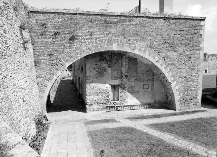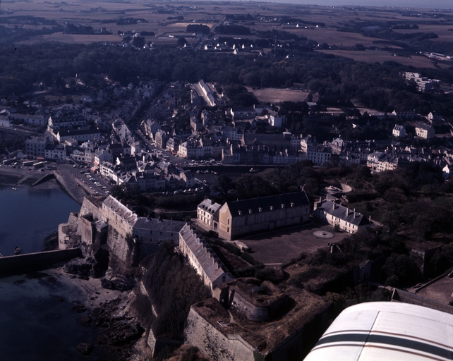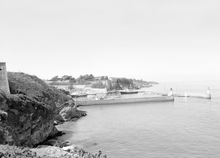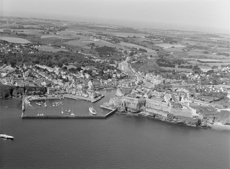 Première citadelle construite par les bénédictins après 1029 ; reconstruction à partir de 1558 avec des matériaux provenant de la destruction du château d'Auray ; de 1658 à 1661 travaux par Daigremont et Dieulaman ; intervention de Vauban de 1683 à 1689 ; destruction partielle en 1761 et reconstruction entre 1827 et 1880.