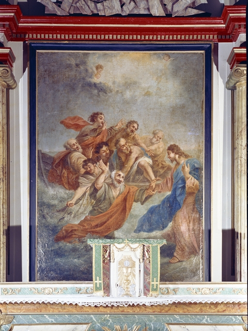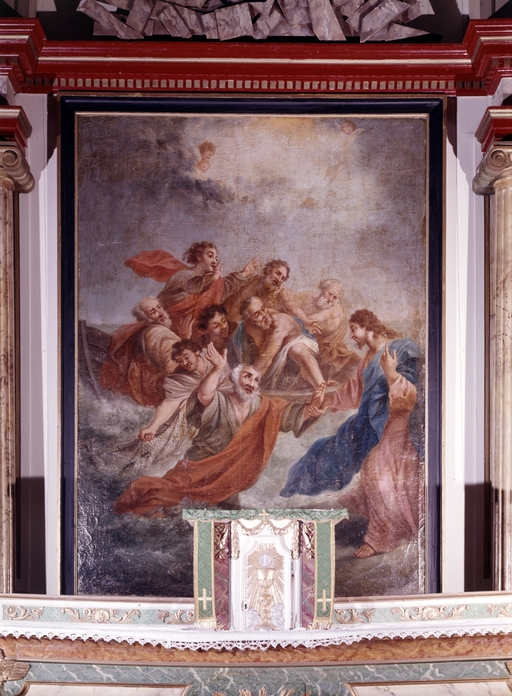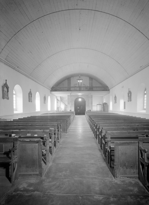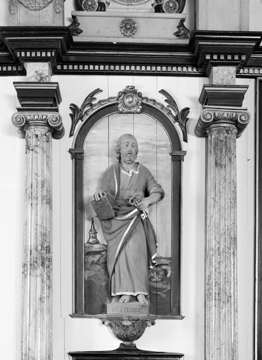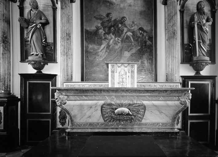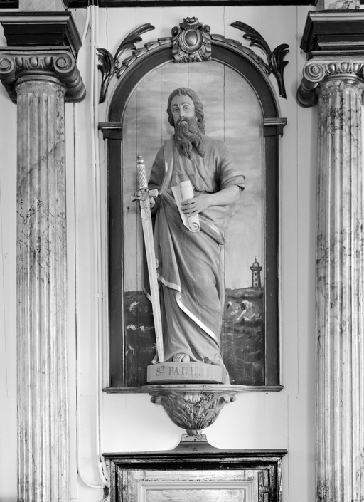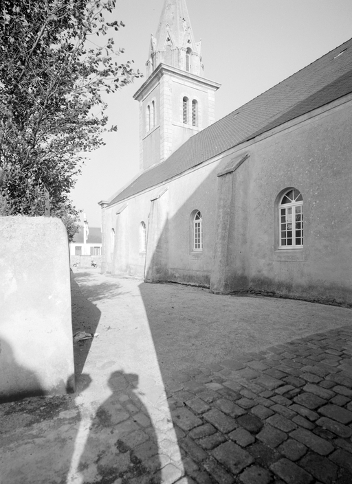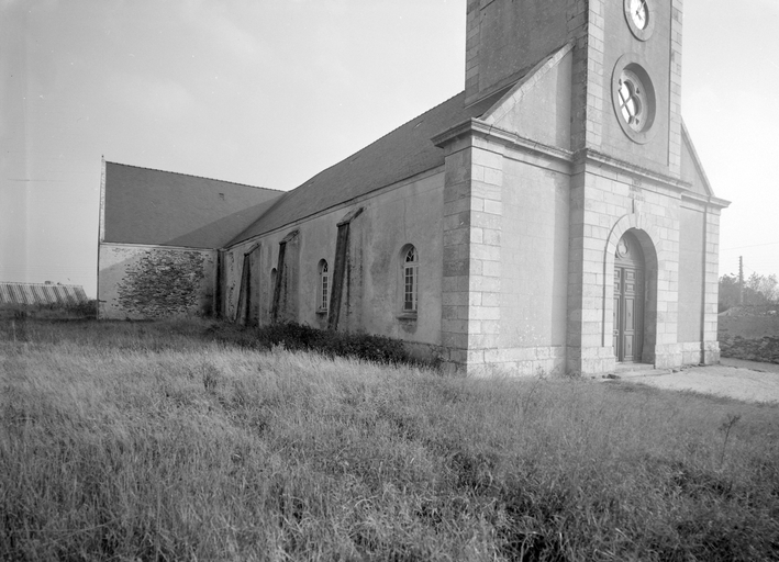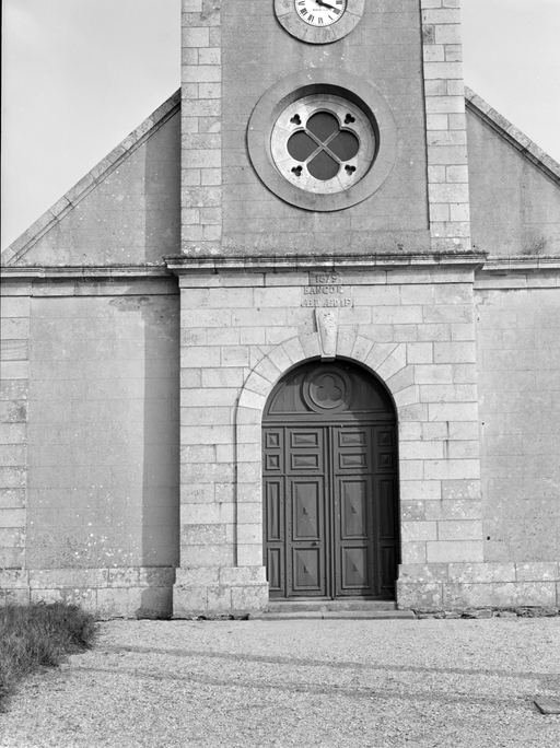 Vocable Saint-Pierre Saint-Paul ; porte les inscriptions : 1520 Richard 1638, 1748, 1860, 1879 ; reconstruction presque totale en 1855, 1879 ; clocher porche par l'architecte Hardouin.