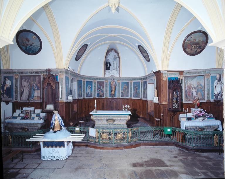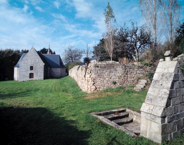 Porte occidentale datée 1600 ; fontaine en 1686 ; reconstruction de l'édifice en 1722.