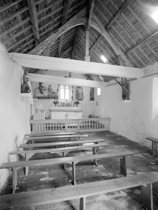 Chapelle 16e ou 17e siècle ; en 1958 nef raccourcie et reconstruction de la façade ouest.