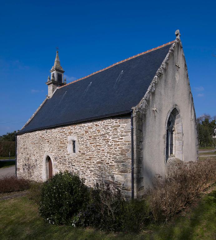 Chapelle de plan rectangulaire construite en moellon de granite et partiellement enduite (chevet et mur nord). La nef, à vaisseau unique est éclairée par quatre baies. Celle du mur est est dotée d'un remplage redenté gothique flamboyant; tandis que le remplage ouest n'est pas redenté. Le vaisseau est couvert d'une charpente à ferme poinçon et entrait chanfreinés et bagués, recouvert d'un lambris.