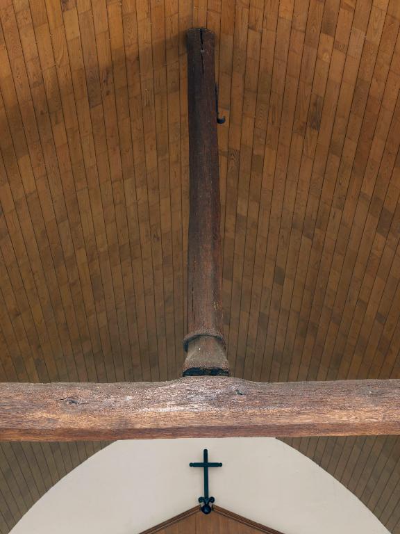 Bien que remaniée dans son élévation ouest, cette chapelle modeste conserve l'essentiel de ses ouvertures du 15e siècle (portes ouest et sud, fenêtre est avec remplage redenté, petite fenêtre du choeur), et surtout sa charpente à ferme à entrait et poinçon chanfreinés et bagués ; seule l'élévation ouest (clocher et remplage de la fenêtre) a été reprise au 19e siècle. Elle conserve en outre un remarquable Christ conserve un Christ en bois polychrome réalisé à la fin du 13e siècle ou au début du 14e siècle. Classé au titre des Monuments historiques en 1944, il est rare tant par ses dimensions que par la représentation dans des cartouches quadrilobés, travaillé en bas relief, des symboles des quatre évangélistes. Les bras ont fait l'objet d'une restauration dans les années 90.