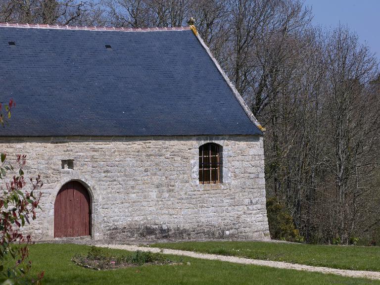 En 1951, lors du remplacement du lambris de couverture, les menuisiers découvrent une inscription écrite en rouge et noir : " Fait par Pierre et Vincent Duval 1761". Les abords de la chapelle ont été récemment réaménagés. (S. Le Lu)