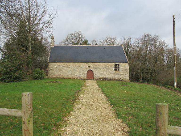 Édifice de plan rectangulaire à vaisseau unique construit en moellon de granite. Le mur nord est aveugle et couvert d'un enduit. Deux fenêtres, créées dans les murs est et sud, éclairent la nef. Les portes sud et est sont en plein cintre chanfreiné. Le mur-pignon ouest est surmonté d'un clocheton croix à fronton triangulaire ornée de volutes d'esprit Renaissance, coiffé d'une croix. Le vaisseau est recouvert d'un lambris peint.