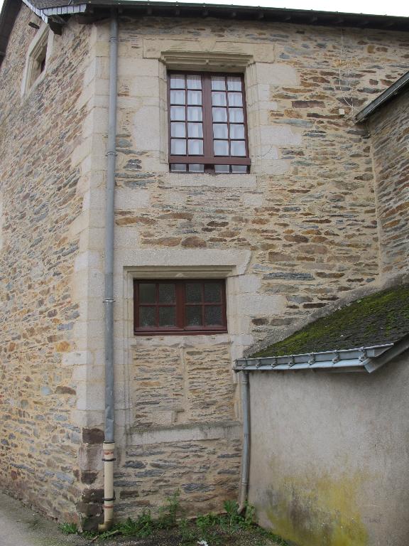 Matériaux : murs en moellons de schiste enduit (disparu en 2011) ; entourage des baies en granite.