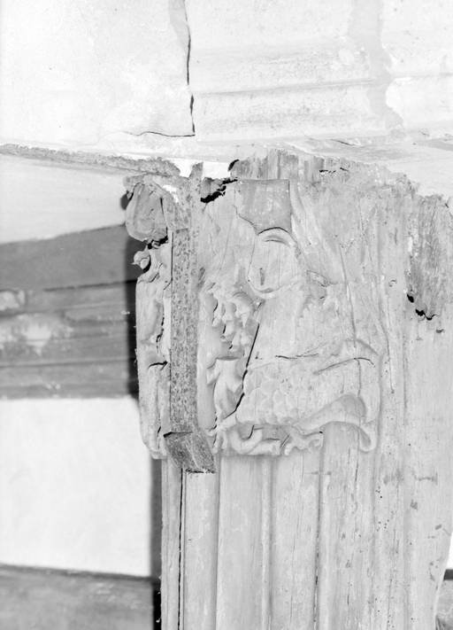 Sujet : chou frise et accolade, support : baies de la tour sud-est et de l'escalier ; support : poutre de la tour sud.
