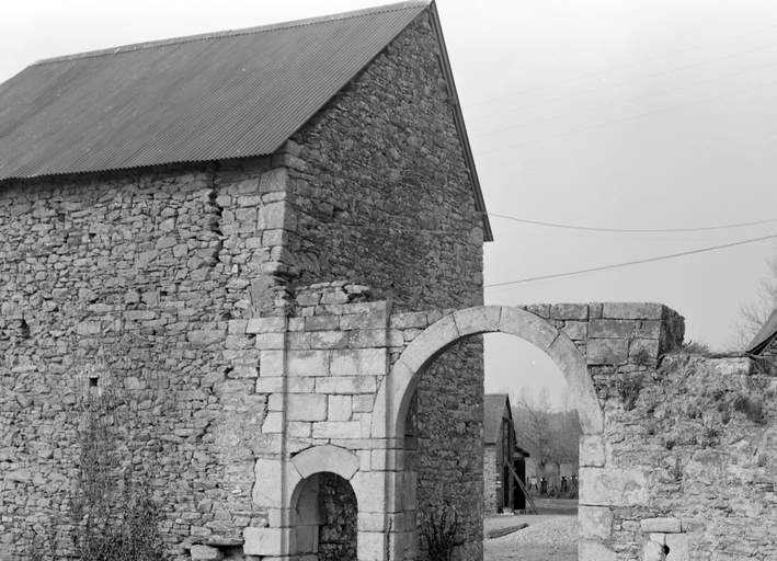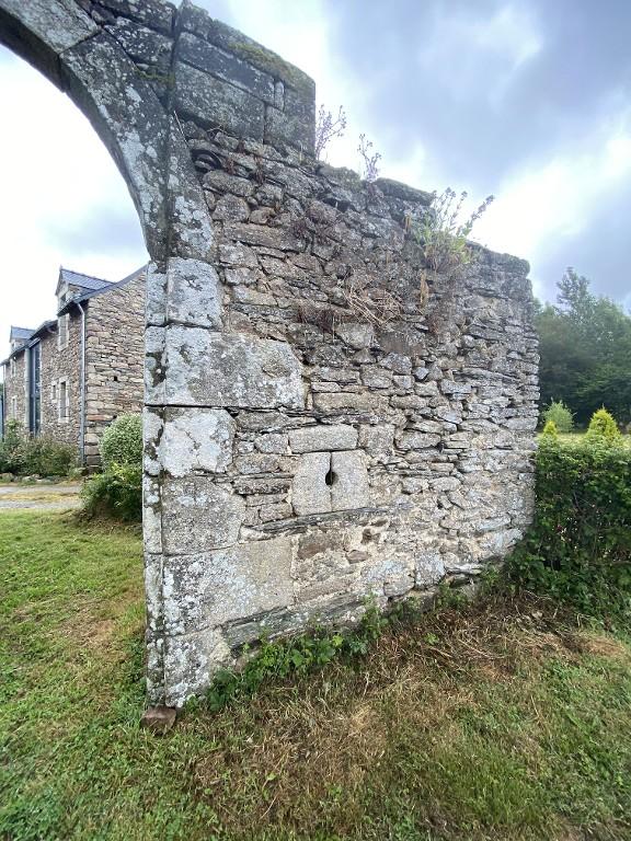 Stèle gauloise ruinée devant le manoir. Le manoir a été construit au 16e siècle ; il n'en reste que des vestiges ; l'actuel logis date du 20e siècle.