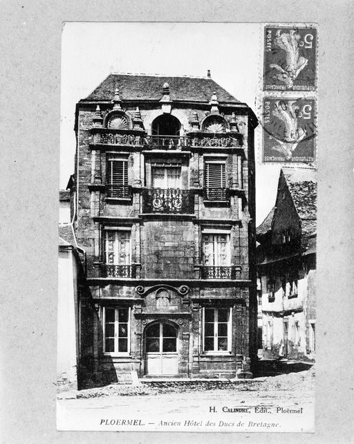 PLOËRMEL. Ancien hôtel des ducs de Bretagne [sic]. Carte postale, Ploërmel : H. Calindre, édit., [1er quart 20e siècle].