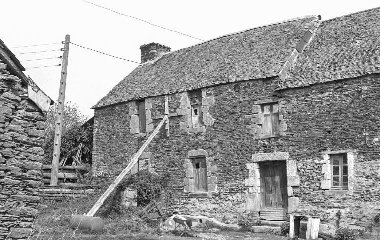 Manoir 17e siècle à l'état de vestiges, portail détruit.