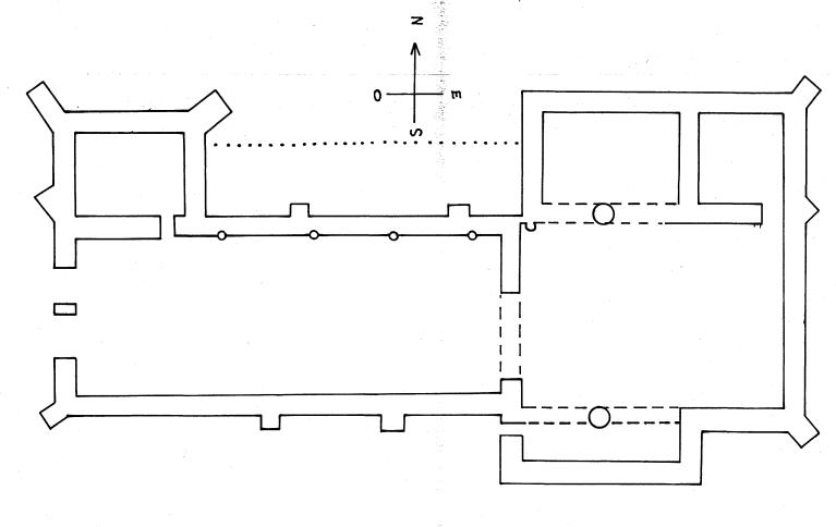 J. Mallet a montré que nombre d'églises priorales rurales d'Anjou présentaient une inégalité de taille de ces passages, qui se manifeste ici par l'apparent désaxement de l'arc par rapport à la nef. Il convient de restituer, au-delà de cet arc, une croisée, un transept, aujourd'hui transformé en chapelles, et une abside semi-circulaire dont la profondeur est à peu près celle du chevet plat du XIe siècle. Le second élément remarquable est la façade occidentale du second quart du XVIe siècle, qu'il faut attribuer à l'atelier qui construisit Saint-Armel de Ploërmel ; le trumeau présente ici, comme le portail nord de Ploërmel, quelques éléments décoratifs de la Renaissance. Enfin, la chapelle seigneuriale au nord-est, construite au cours de la seconde moitié du XVIe siècle, présente une disposition originale que l'on retrouve d'ailleurs à Ploërmel dans la chapelle Saint-Armel au nord ; à l'origine, cette chapelle, dont le sol était à un niveau nettement plus bas que l'actuel plancher, comportait un rez-de-chaussée et un étage faisant fonction de chapelle funéraire et d'oratoire, chaque pièce ouvrant sur le chœur par une baie en plein cintre.