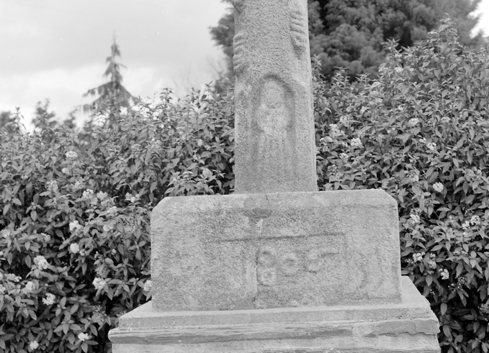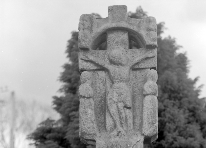 Croix construite en 1806, date portée, sculpture dans le style du 15e siècle : Christ en croix.