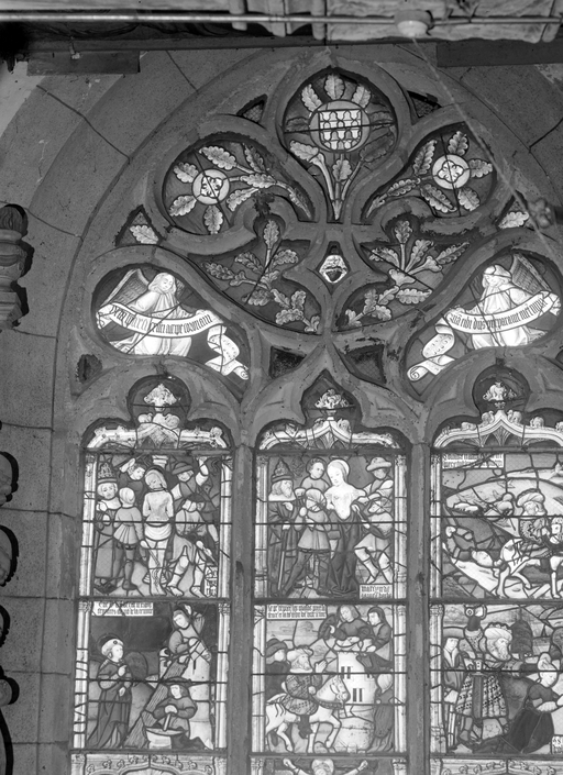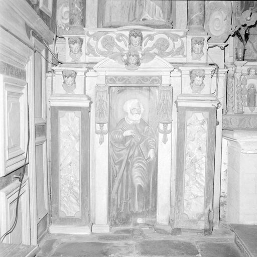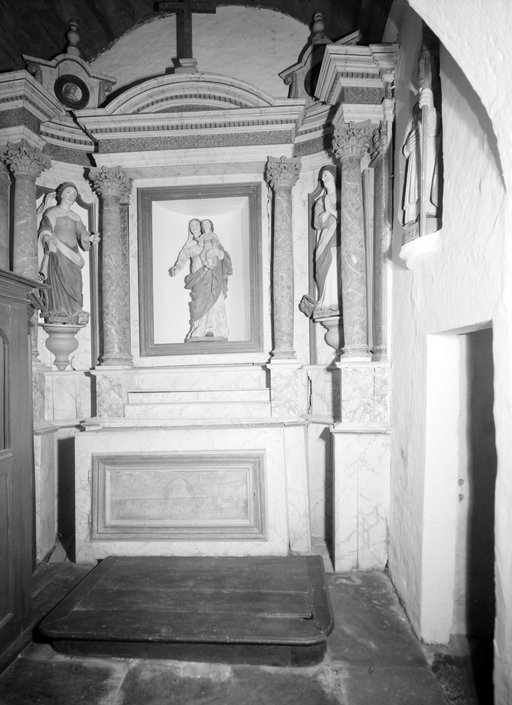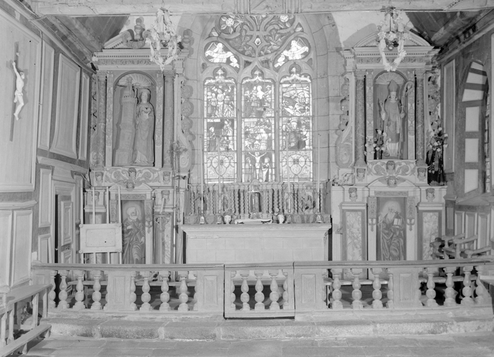 Croix monumentale mutilée, de la 2e moitié du 15e siècle ; vestiges d'une campagne du 16e siècle dont subsistent la fenêtre du chevet et les panneaux de vitraux qui y sont regroupés, la fenêtre ouest du mur sud de la nef et quelques éléments de charpente (entraits) ; importants travaux au 4e quart du 17e siècle : porche et porte sud, fenêtre est du mur sud de la nef, remontage de l'élévation ouest, adjonction de la chapelle nord ; construction de la fontaine : 1601 incertain ; remontage de la croix : date inscrite : 1635.