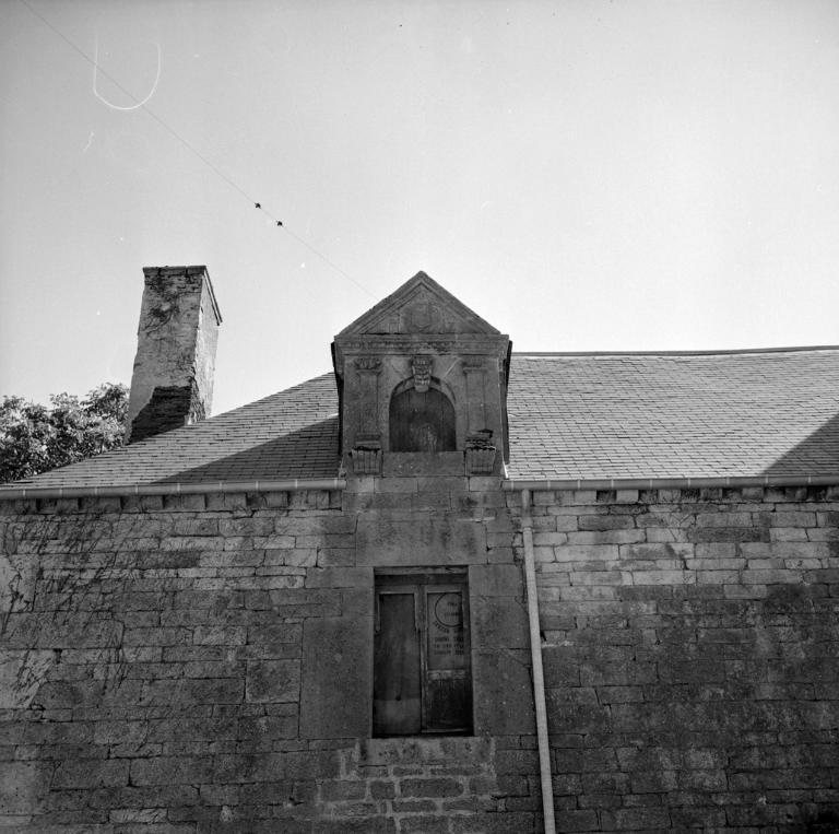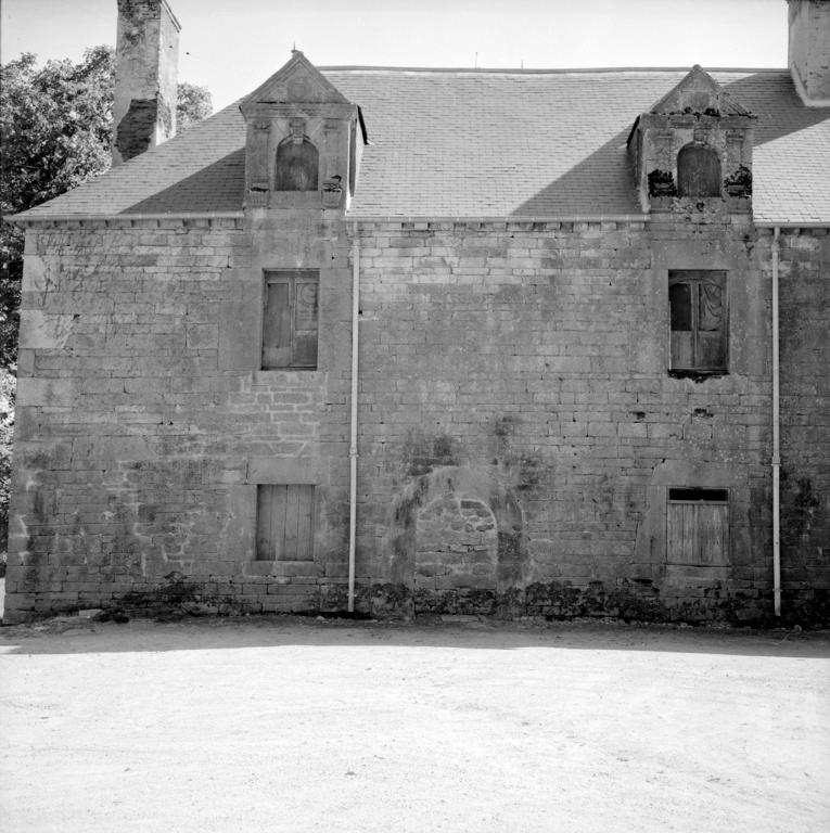 Blasons des lucarnes illisibles, datation 1ère moitié 17e siècle d'après caractères stylistiques. Les déclarations du 17e siècle indiquent comme propriétaires : François de Bahuno, en 1638 et le sieur de Kerdisson en 1682 (d'après H. du Halgouët).