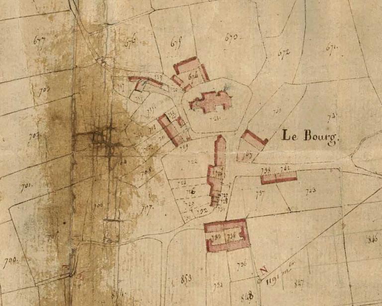 Le cadastre de 1825 montre que la physionomie générale du bourg a peu changé depuis le XIXe siècle. Quelques constructions nouvelles apparaissent à la fin du XIXe et au début du XXe siècle au nord, et à la fin du XXe siècle à l’entrée est. L’ancienne salle des fêtes remplaçait un hangar agricole. L’urbanisme ne comporte pas de lotissements, et les alignements et parcelles sont restés fidèles aux configurations historiques. Le bâti ancien reste prédominant : au nord, l’enclos de l’ancien presbytère est toujours visible ; à l’ouest, subsistent trois maisons du XVIIe siècle, dont l’une ornée d’un calice ; au centre, une maison du XVIIIe siècle construite pour une communauté religieuse et plus au sud une maison à cour fermée date de 1736.