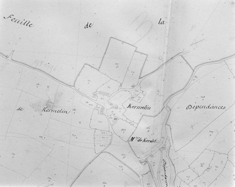 Logis édifié vers 1520. Les latrines (?) sur le pignon sud, l'appentis postérieur et le blason surmontant la porte principale ont disparu. Aile en retour (cuisine ?) 16 siècle. Remaniée au 19e siècle, peut-être transformée en étable. Construction au 20e siècle d'un bâtiment joignant le logis et la cuisine étable avec remploi d'une porte ancienne. Puits fin 18e siècle provenant du manoir de Loyon en Ploeren (Morbihan), installé dans la cour vers 1960.