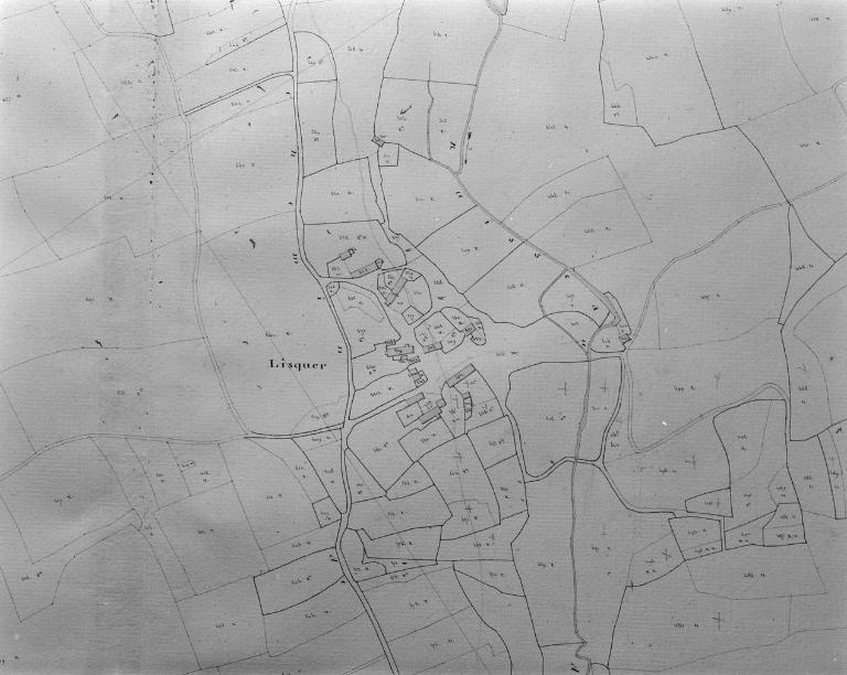 Logis 18e siècle (salle commune, étable). Prolongé fin 18e ou début 19e siècle par une partie chambre et cave. Grange au sud, figurée en 1844, en ruine. Toiture remaniée au 20e siècle.