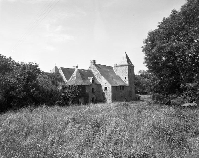 Corps principal central à 1 étage carré et comble à surcroît en moellon, couvert en ardoise, pignons découvert à l'ouest, à ruellée à l'est, tour d'escalier postérieure couverte en pavillon raccordée par noue, appentis postérieur couvert en appentis ; partie est en moellon, un étage carré, toit à pignon couvert, pavillon antérieur en moellon, un étage carré et comble à surcroît, toit en pavillon ; colombier en moellon, toit polygonal.