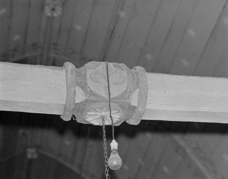 Armes : France et Bretagne, sujet : tête de crocodile, support : entrait.