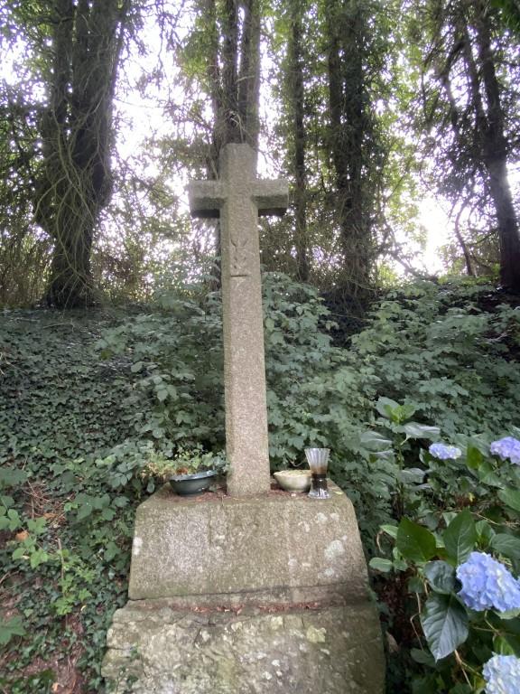 Fontaine de dévotion Notre-Dame des fleurs et croix monumentale (Lanouée fusionnée en Forges de Lanouée en 2019)