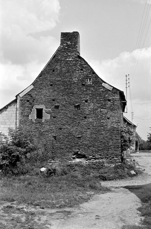 Le hameau, au nord de la commune, est assez développé et comprend plusieurs alignements de maisons dont la plupart sont désaffectées, parfois depuis longtemps reconverties en dépendances agricoles. Cette maison, qui date de la fin du 16e siècle ou du début du 17e, présente une structure qui est une variante du type à une pièce d'habitation par étage ; un escalier en vis dans l'angle, à droite de la porte d'entrée, dessert la pièce de l'étage et le comble. Les deux cheminées sont superposées sur le pignon gauche. La variante par rapport au type normal est apportée par la présence d'une porte haute ouvrant dans la pièce de l'étage, au lieu d'une simple fenêtre, ici placée dans le pignon à côté de la cheminée. Cette porte haute, qui semble d'origine, desservait-elle une partie "grenier" dans la chambre de l’étage, ou bien donnait-elle accès à ce niveau à l'escalier menant au grenier du comble ? La lecture des fonctions de logement et de stockage à l'étage de certaines maisons est souvent ambiguë et les termes de l'alternative sont variables : entre logement dominant et stockage secondaire, ou l'inverse, toutes les variantes sont possibles.