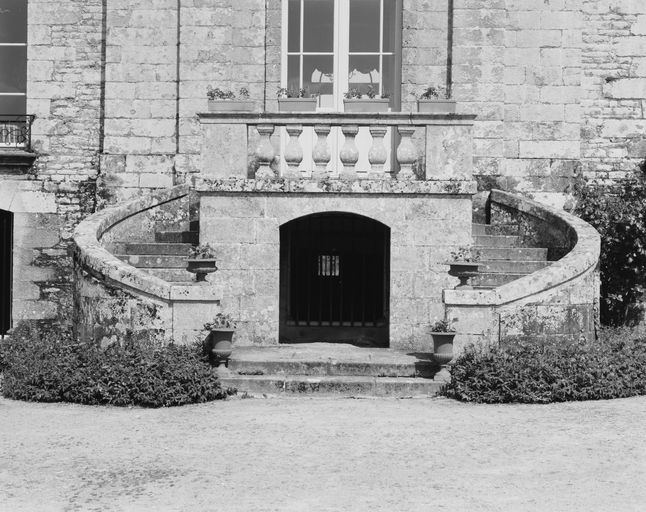 Armes en alliance Bonin et Saint-Pern sur le fronton du logis et sur le portail en ferronnerie du parc.