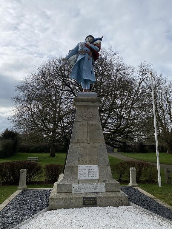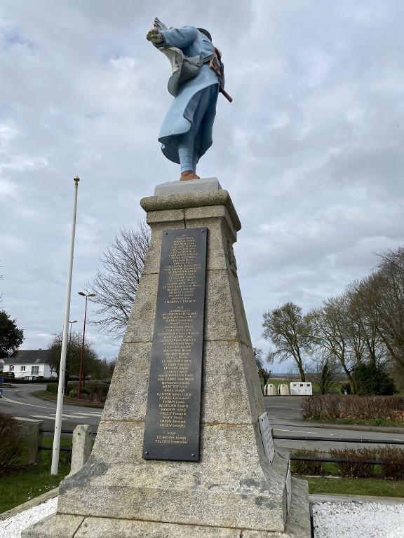 Monument aux morts inauguré en 1924. La statue, réalisée par Maubert, sculpteur à Nice, représente un Poilu au drapeau ; le soubassement a été réalisé par Tripon, entrepreneur à Josselin (travaux historiques).