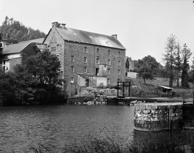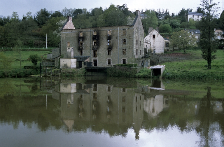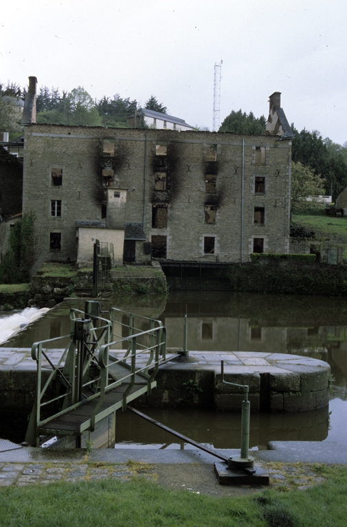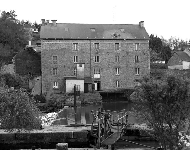 Minoterie construite vers 1875 probablement sur l'emplacement d'un ancien moulin à eau ; rehaussement d'un niveau et mise en place du mécanisme actuel en 1937, travaux dirigés par Jamet, ingénieur de Rennes ; logis construit en 1937.
