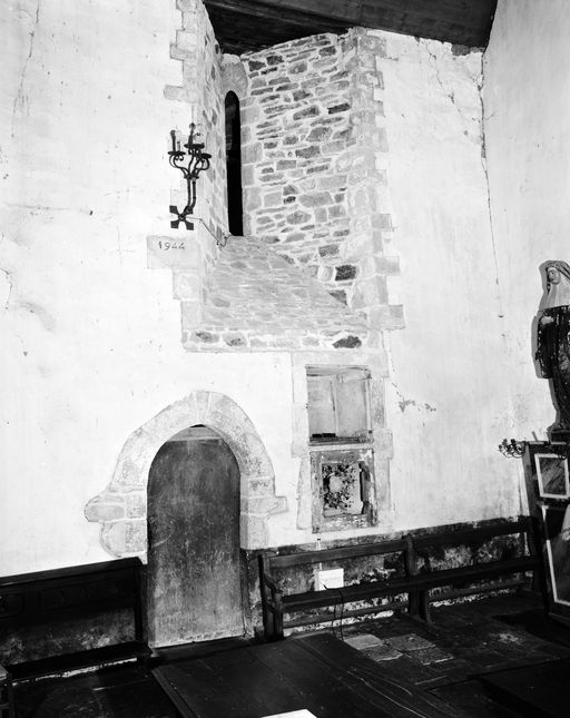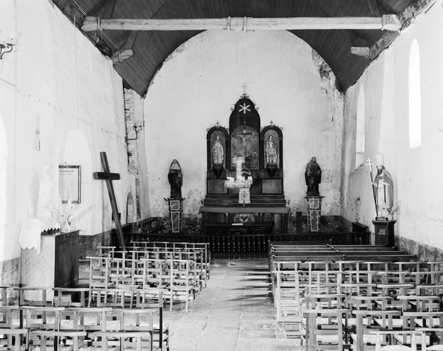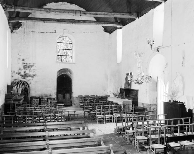 Du bâtiment d'origine, seule subsiste la nef éclairée par des petites baies en arc plein cintre ; le chœur et le transept sud ont disparu durant la seconde moitié du XVIIIe siècle. Les deux niveaux inférieurs de la tour, contenant la sacristie et une salle de fabrique, sont un rajout de la fin du XVIe siècle, alors que le clocher et la petite chapelle nord ne remontent qu'au milieu du XVIIIe siècle.