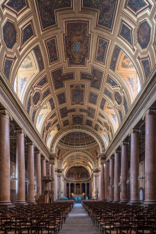 Eglise cathédrale dédiée à saint Pierre fondée dès le 6e siècle. Détruite, elle sera reconstruite à partir de 1180. La nef de style gothique est achevée en 1359, date de consécration de l'édifice. Des chapelles avaient été rajoutées aux 14e, 15e, 16e et 17e siècles. En 1533, la façade ouest qui menaçait ruine est démolie. Elle sera reconstruite à partir de 1536 et terminée seulement en 1704 : le premier niveau est construit entre 1541 et 1543, seules les colonnes qui encadrent les portes latérales sont de la deuxième campagne de construction entre 1611 et 1620, la colonne droite de la tour nord porte la date 1613, elles ont été réalisées par Germain Gauthier. La date de 1613 est portée une deuxième fois sur le mur intérieur sud du narthex. Le deuxième et troisième niveaux des tours sont élevés entre 1640 et 1654 par Tugal Caris, le quatrième et le dernier niveau par Pierre Corbineau entre 1654 et 1678, qui reprend vraisemblablement le portail central et le surmonte d'un balcon. Le dernier architecte à avoir travaillé à cette façade entre 1679 et 1704 se nomme François Huguet. Il termine le couronnement des tours, et place les armes de France sur le fronton central. La balustrade de la tour nord porte la date 1679. Le choeur en mauvais état s'écroule en 1754. On décide alors de la démolition de l'ensemble de la nef et du choeur. En 1787 débutent les travaux de reconstruction qui vont s'étaler jusqu'à la fin du 19e siècle. Cette nouvelle cathédrale s'élève sur les plans de Mathurin Crucy, architecte nantais, qui meurt en 1826. Les travaux sont repris par l'architecte Richelot jusqu'en 1845. Entre 1869 et 1873, l'architecte Langlois refait les voûtes, habille les colonnes et conçoit un grand décor peint polychrome. Quant aux derniers travaux, ils ont été réalisés par l'architecte Alfred Coisel, dont la coupole centrale en 1884. La décoration murale est de Jobbé-Duval pour les voûtes et de François Alphonse Le Henaff (1821-1884) pour le déambulatoire du choeur.