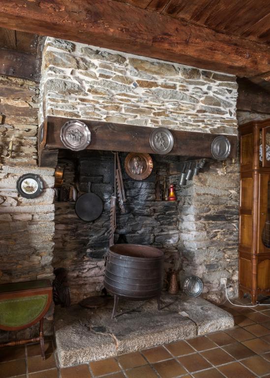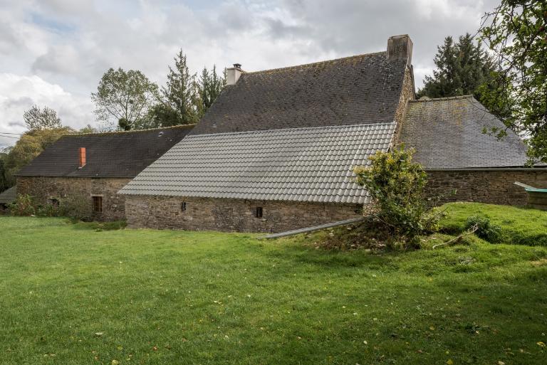 Le logis principal est orienté au sud, sur la cour. Il est construit en moellons de schiste soigneusement équarris, avec des encadrements de baies en pierre de taille de granite. Sa façade est ordonnancée, à trois travées, avec une entrée latérale. L'entrée ouvre sur le vestibule qui abrite un escalier tournant à retours avec jour en bois, construit entre le pignon et une cloison en menuiserie. L'appentis à étage accolé au mur arrière de la maison abrite un cellier au rez-de-chaussée. Il est accessible depuis le vestibule, par une porte ménagée sous l'escalier, et depuis le repos de l'escalier par une porte établie dans le mur nord.