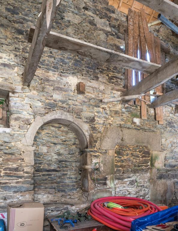 Sur la façade du logis 1760, la porte charretière en arc surbaissé avait été partiellement bouchée au 19e siècle pour établir à la place une fenêtre. Au début du 21e siècle, les travaux de restauration ont permis de la remettre à jour. Son existence indique que la moitié nord du logis abritait une dépendance, probablement destinée au conditionnement des toiles. C'est également lors de ces travaux que la porte et la gerbière du logis secondaire 19e siècle ont été refaites en remployant des pierres anciennes.